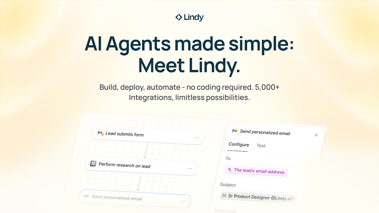 With Lindy, you can build AI agents and apps in minutes simply by describing what you want in plain English.