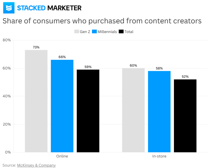 1ļøā£ Creator Commerce Is Growing: New stats reveal that 66% of millennials and 73% of Gen Z have purchased products directly from creators online. This shows the creatorās role has shifted from inspiration to transaction.